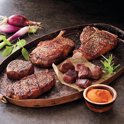 | Especially for the discriminating gourmet, when only the absolute finest in classic American cuisine will do. Only the top few percent of all beef qualifies for this noteworthy distinction. The Prime Collection features six of each of our finest cuts of wet-aged beef, including USDA Prime porterhouse, USDA Prime New York strip, USDA Prime bone-in rib chops, USDA Prime filet mignon, and USDA Prime tenderloin cubes. We've added our exclusive Epicure Seasoning, a secret formula of spices, to enhance the flavor when grilling or broiling.
